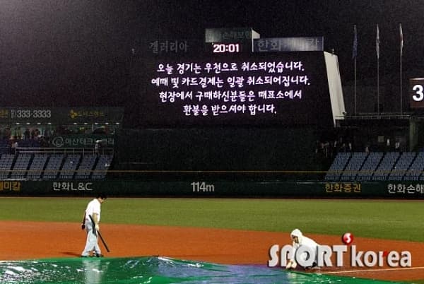 | 경기 중 우천 중단 | 6회 이후 | 콜드게임 (승패 결정) | 환불 불가 |