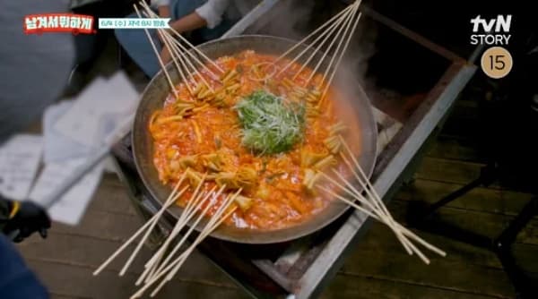 세 번째 방문지는 조금 특별합니다. 민박 느낌이 물씬 풍기는 공간에 찜질방과 식당이 함께 있는 양평솥뚜껑닭볶음탕! 이영자와 박세리, 야구부 3인방은 모두 찜질복으로 갈아입고 닭볶음탕 앞에 앉았고, 닭볶음탕과 어묵꼬치의 조합이라는 이색 메뉴에 눈을 번쩍 뜨게 했습니다. 닭볶음탕은 솥뚜껑에 불향을 입혀 더욱 깊은 맛을 내며, 양도 많고 가격도 합리적입니다. 무엇보다 이곳은 찜질방을 함께 운영하기 때문에 식사 후 휴식까지 가능한 곳! 여행자에게는 최고의 구성이라 할 수 있죠. 방송에선 이곳에서 펼쳐진 운동부 장작패기 게임도 재미를 더했습니다.