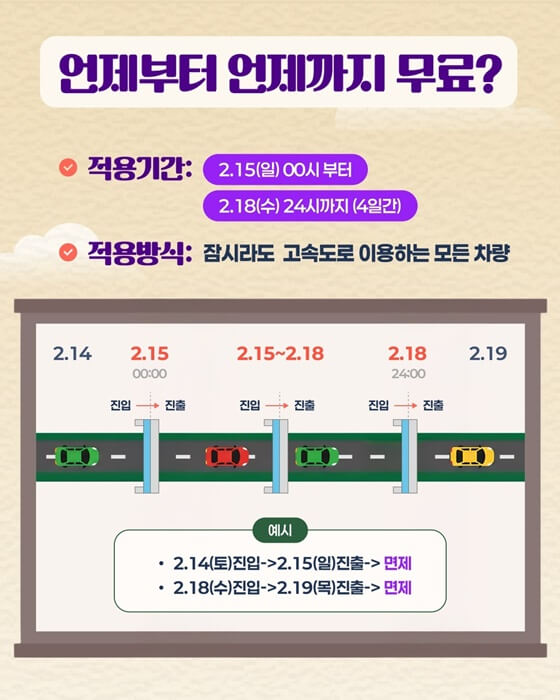 1. 설연휴 고속도로 통행료 무료 기간 정확히 언제?