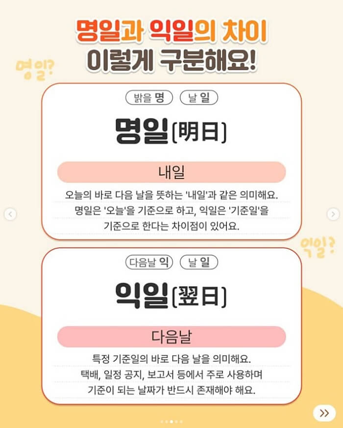 | 익일(翌日) | 특정 날짜의 다음 날 | 다음 날 | 주문일·접수일 등 기준일을 먼저 확인 |