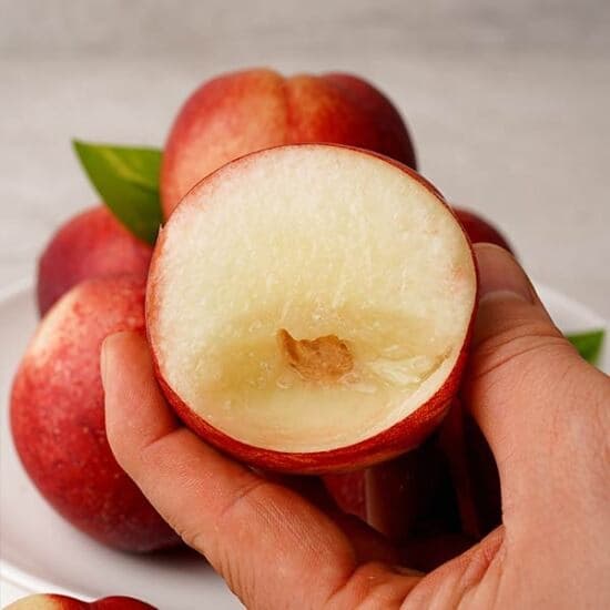 기존의 천도복숭아처럼 껍질이 매끄러워 털이 없고, 백도처럼 부드럽고 달콤한 과육을 갖추고 있죠.