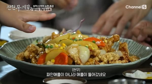 “탕수육은 사과랑 옥수수 올라간 옛날 감성 그대로. 먹다 보면 중독됩니다.”
