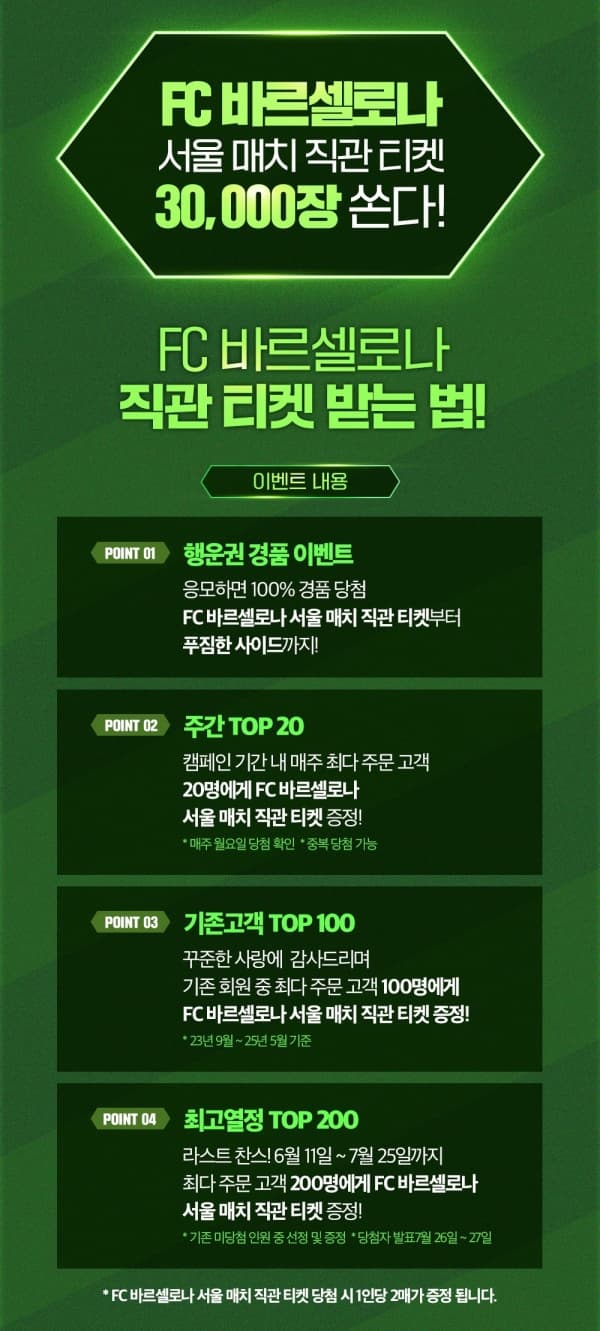 바르샤 내한 1등석도 노린다? 주간 TOP 20 이벤트도 주목!