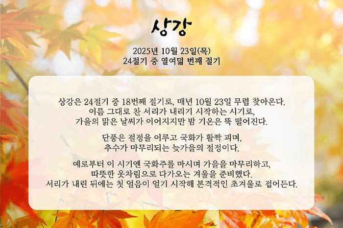 2025년 10월 23일, 오늘은 상강입니다.