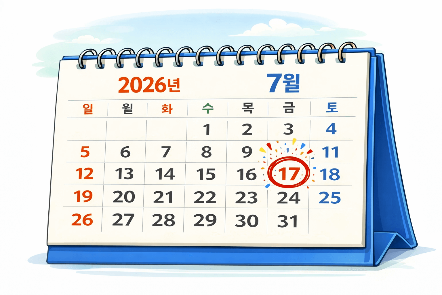 - 2026년 7월 17일은 금요일, 연휴 가능성 매우 높음